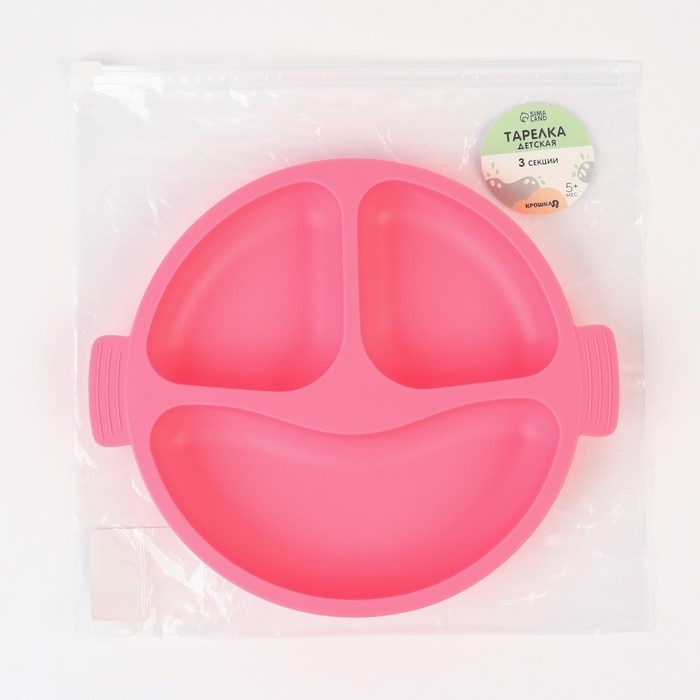 Тарелка детская 3 секции, удобные ручки, Крошка Я, 22,5х19,5х3, розовый