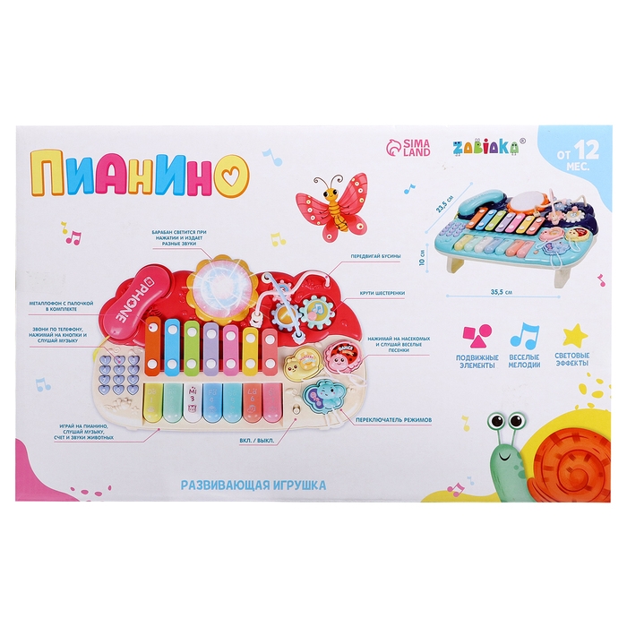Развивающая игрушка «Пианино» разработана специально для малышей от 12 месяцев. Яркая игрушка привлечёт внимание интересной конструкцией и надолго займёт малыша благодаря множеству полезных функций. Пианино не только развлечёт ребёнка — с ним можно осваивать новые навыки!