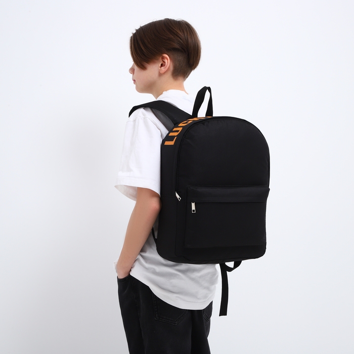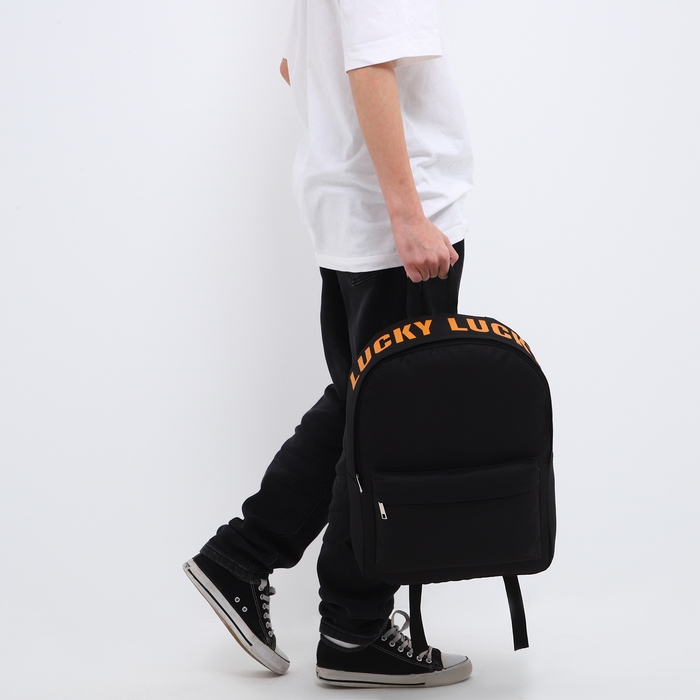 Рюкзак школьный текстильный с печатью на верхней части LUCKY, 38х29х11 см, цвет чёрный