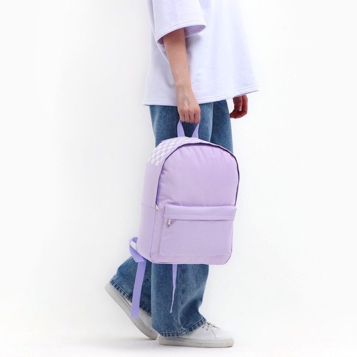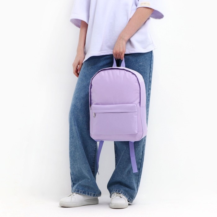 Рюкзак школьный текстильный с печатью на верхней части, 38х29х11 см, цвет сиреневый