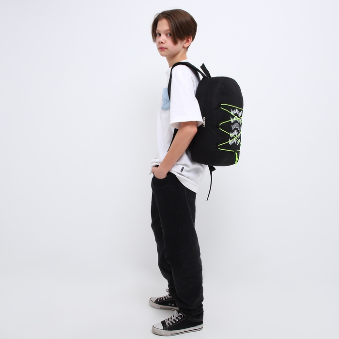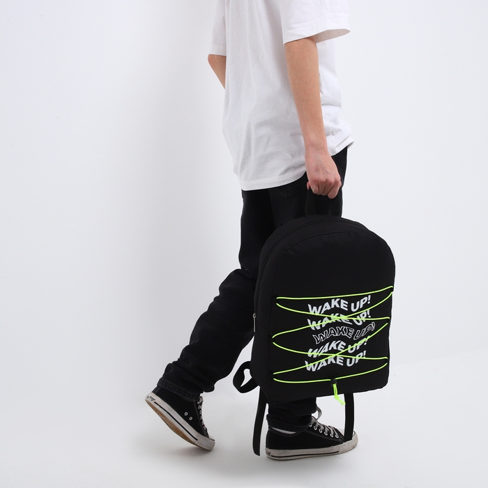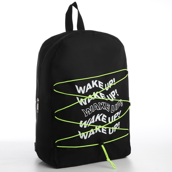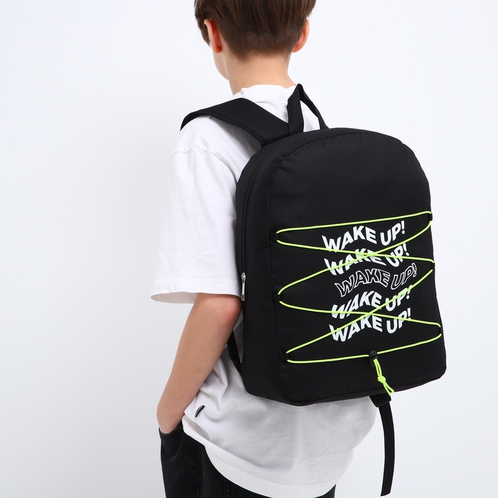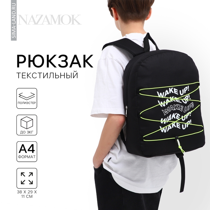 Рюкзак школьный текстильный со шнуровкой WAKE UP, 38х29х11 см, чёрный