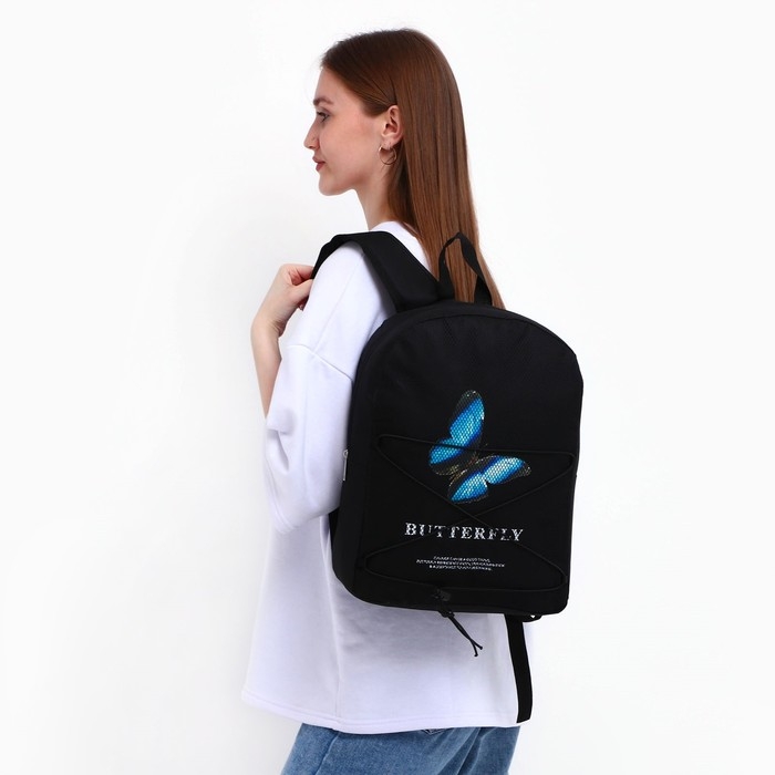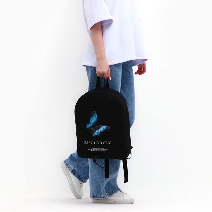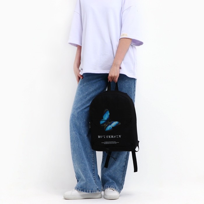 Рюкзак школьный текстильный со шнуровкой BUTTERFLY, 38х29х11 см, чёрный