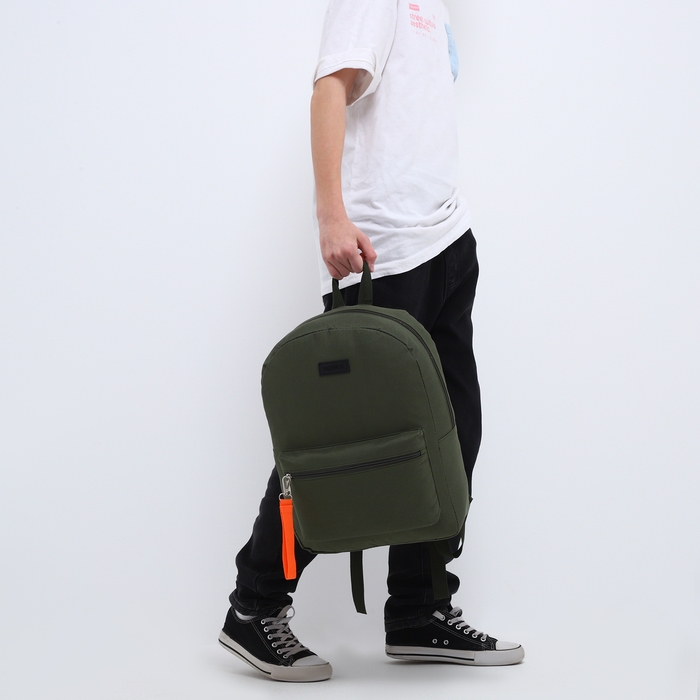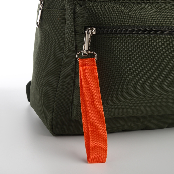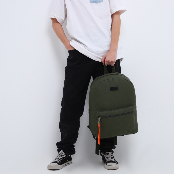 Рюкзак школьный текстильный с брелком стропой, 38х29х11 см, цвет хаки