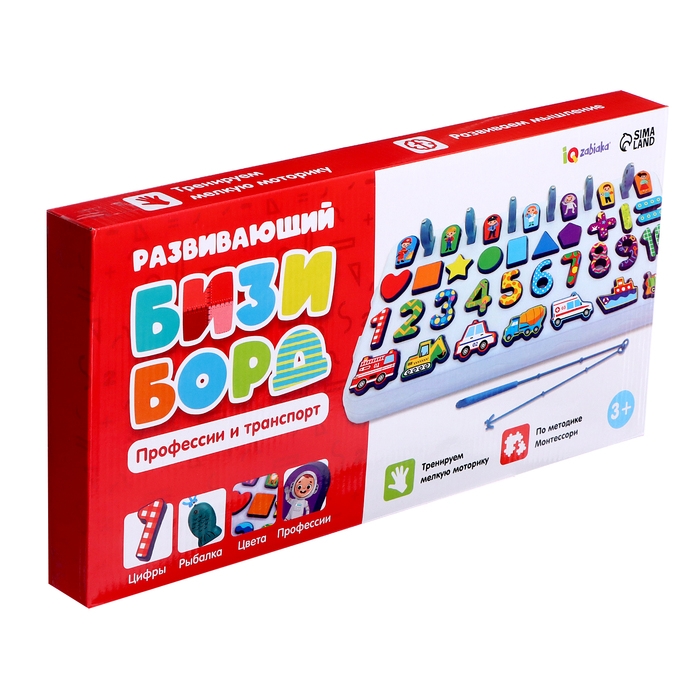 Развивающий бизиборд «Профессии и транспорт» — это многофункциональная доска, с помощью которой ребёнок познакомится с цифрами и основами счёта, повторит названия цветов, профессий и специального транспорта, а также выучит названия геометрических фигур и научится их различать.