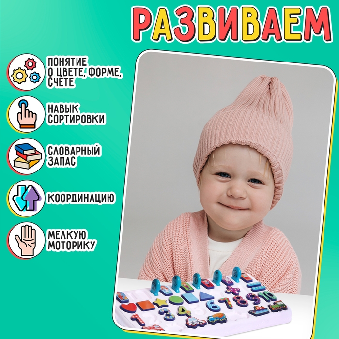- Выложите цифры по порядку на развивающей доске.