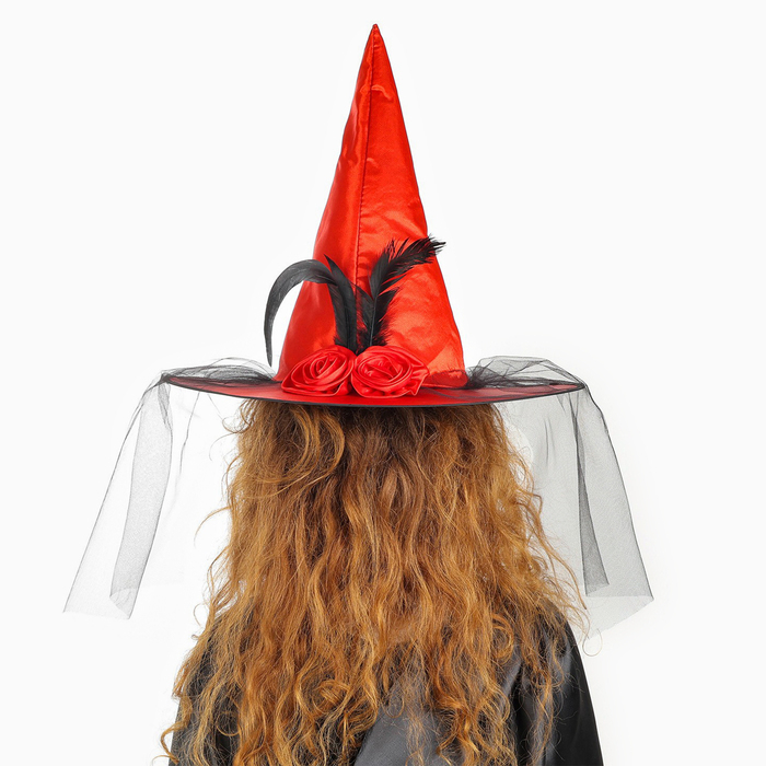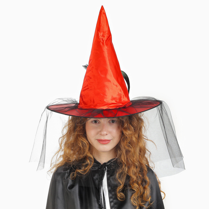 Карнавальная шляпа «Ведьмочка», с фатой, цвет красный