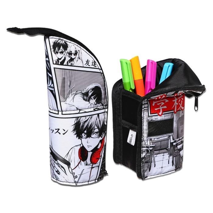 Пенал тубус-подставка, 85 х 210 х 65 мм, мягкий, тканевый, Calligrata, ПМО 12-20 "Аниме"