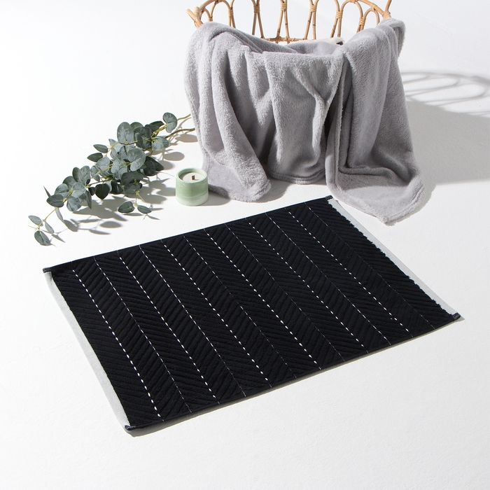 Коврик махровый Этель Lines, цв. чёрный, 50х70 см, 100% хлопок, 750 г/м2