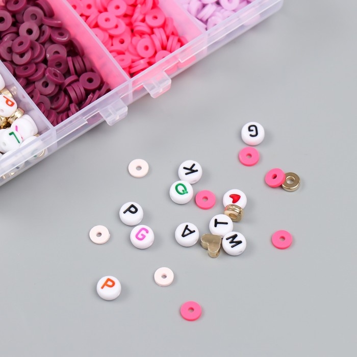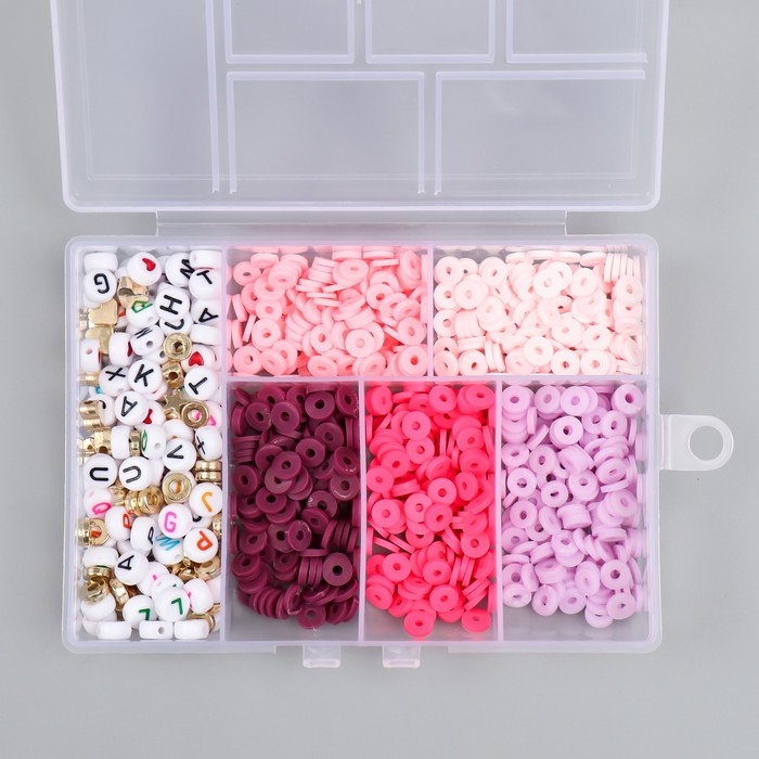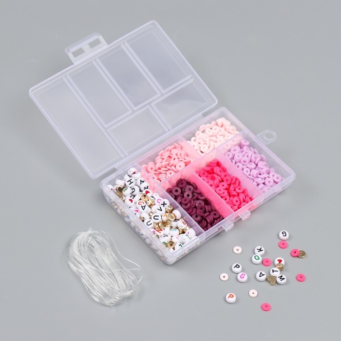 Бусины в шкатулке "Розовые" нить 0,8 мм 5 м 12х8,4х2,2 см