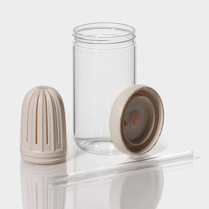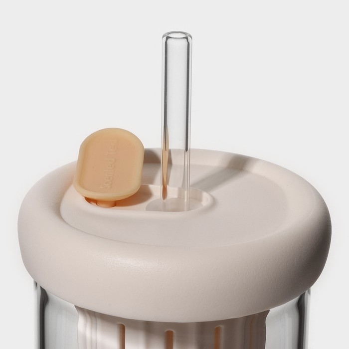 Стакан стеклянный с крышкой и трубочкой «Бьорн», 450 мл