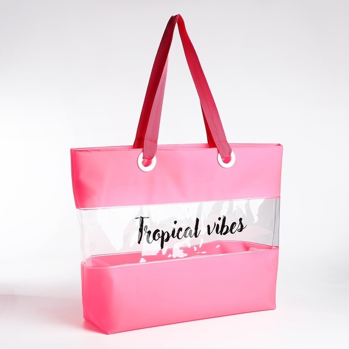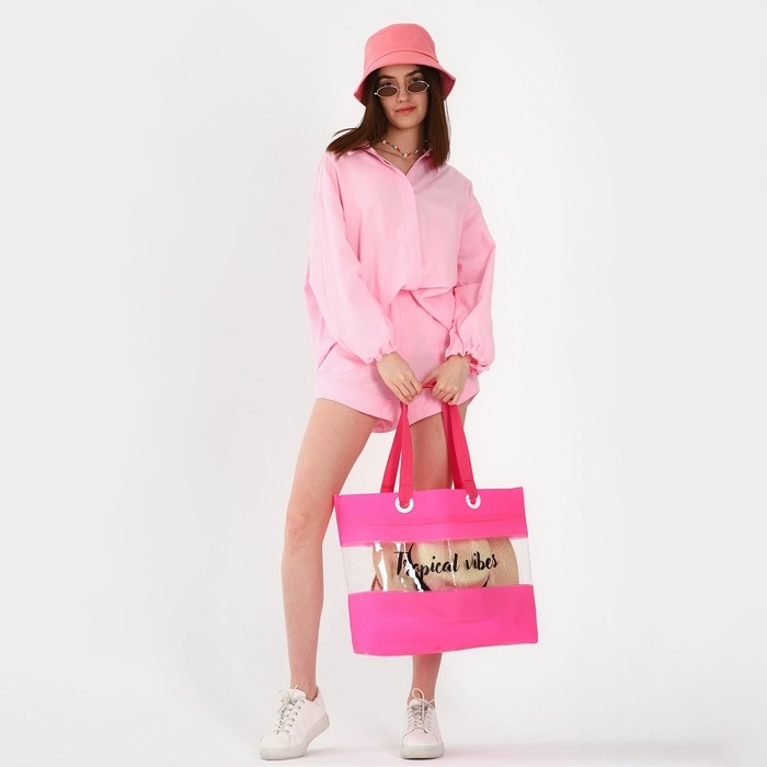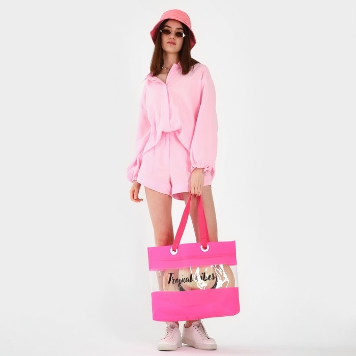 Сумка женская пляжная Tropical vibes, 50х35х11 см, розовый цвет