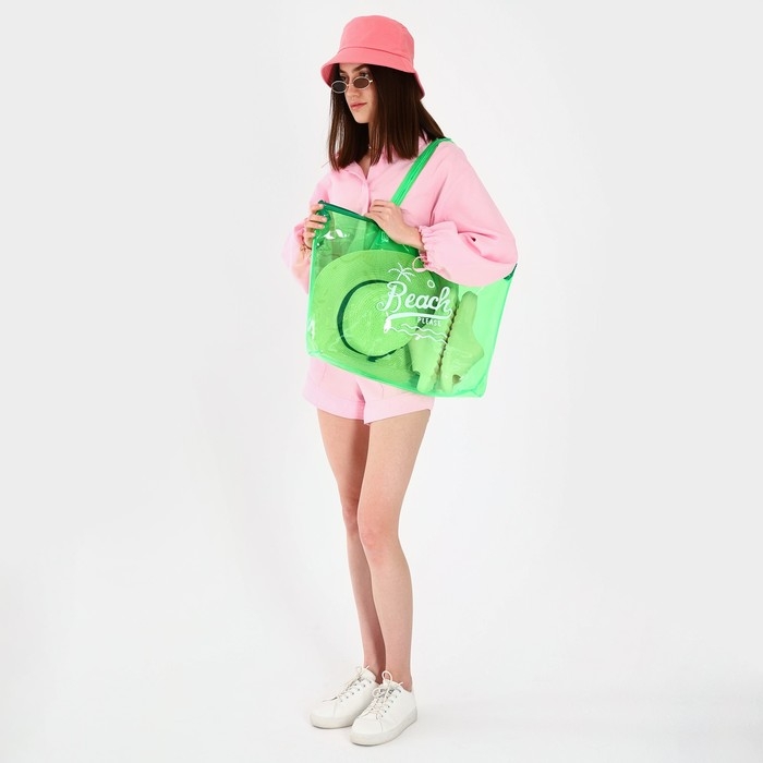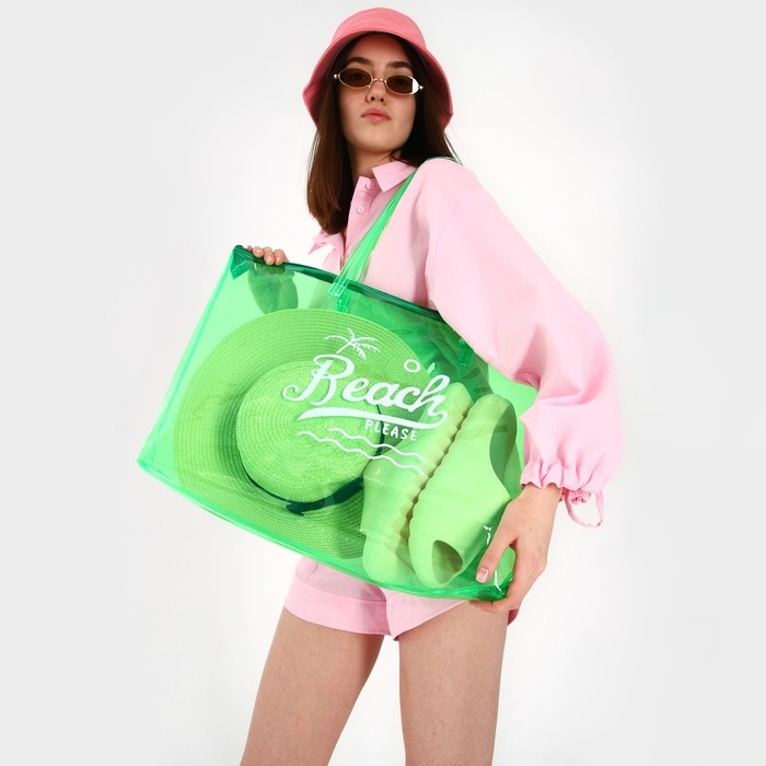 Сумка женская пляжная Beach please, 50х35х11 см, зелёный цвет