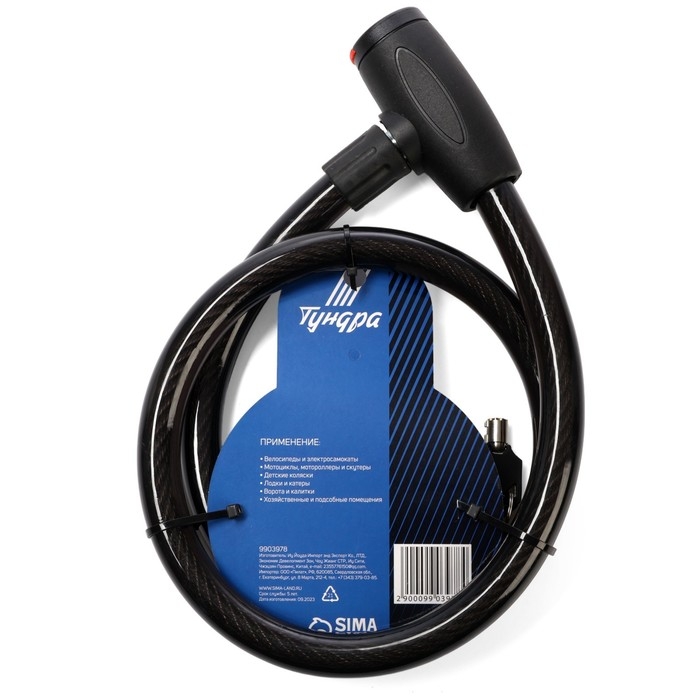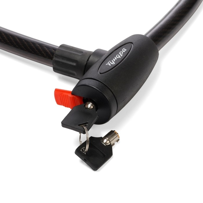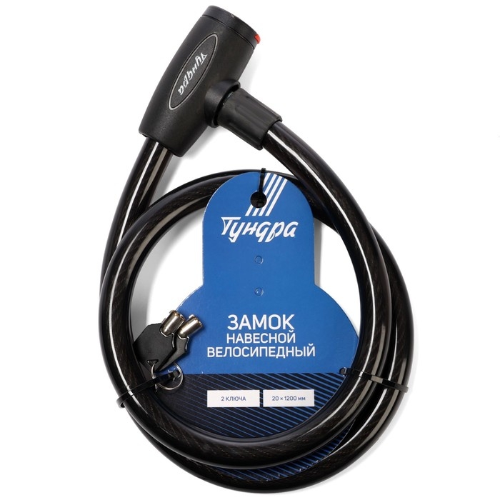 Замок навесной велосипедный ТУНДРА, 20х1200 мм., 2 ключа , цвет черный