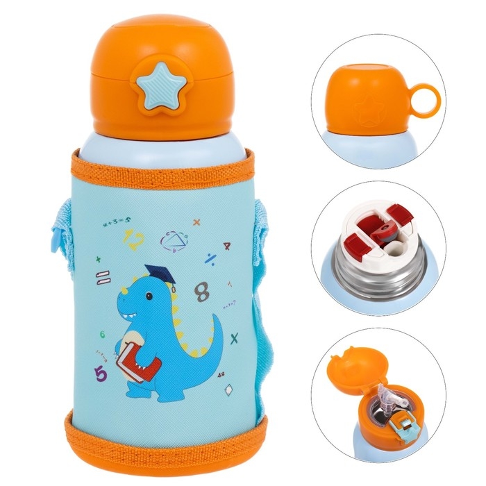 Термос, 600 мл, Детский "Динозавр", с кружкой, два вида крышек, сохраняет тепло до 8 ч