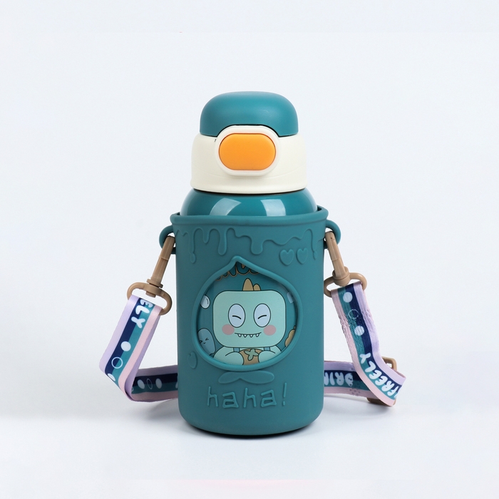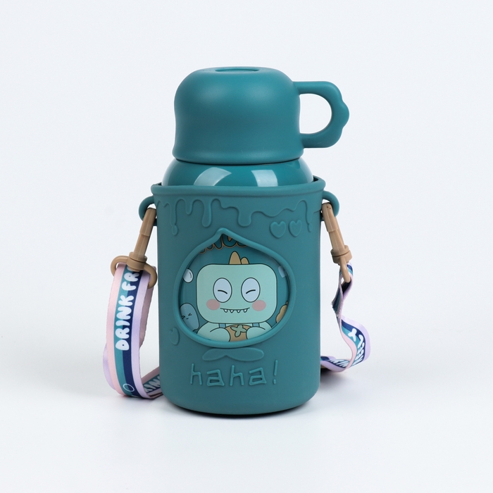 Термос, 500 мл, Детский "Динозавр", с кружкой, два вида крышек, сохраняет тепло до 8 ч