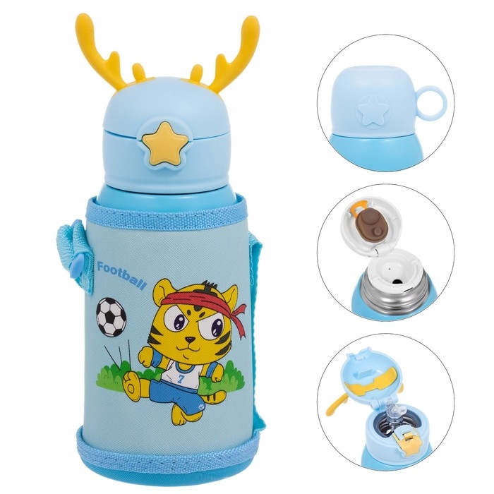 Термос, 600 мл, Детский "Кот футболист", с кружкой, два вида крышек, сохраняет тепло до 8 ч