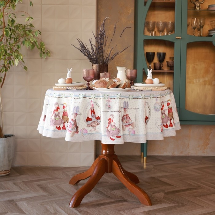 Скатерть "Этель" Пасхальные Тильды d=215 см, 100% хл, саржа 190 гр/м2