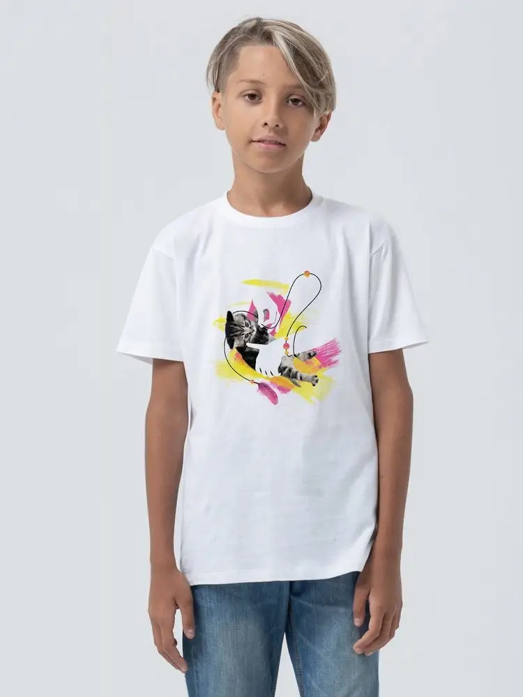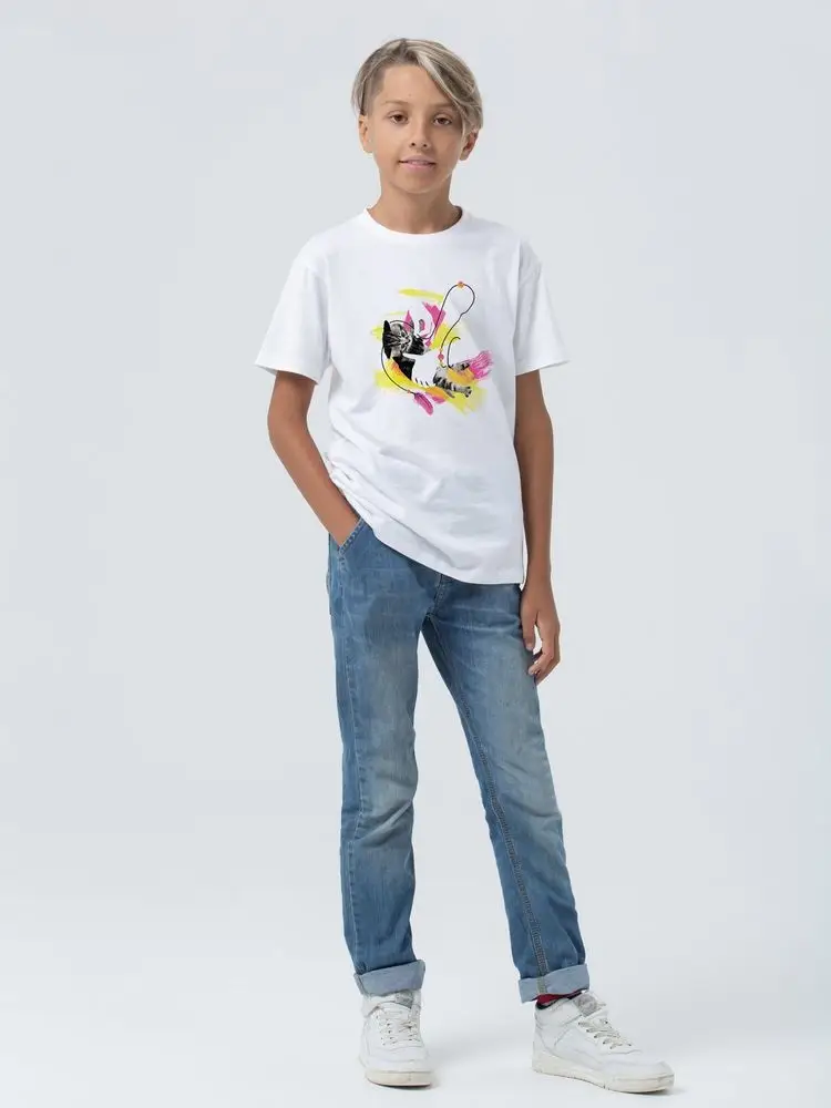 Футболка детская «Обними кота», белая, на рост 130-140 см (10 лет)