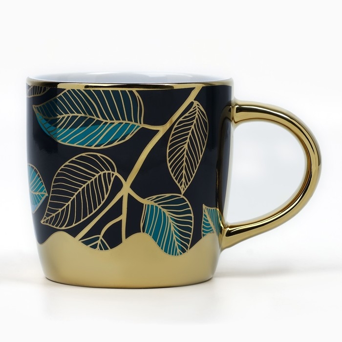 Кружка керамическая «Листья», 300 мл, цвет синий
