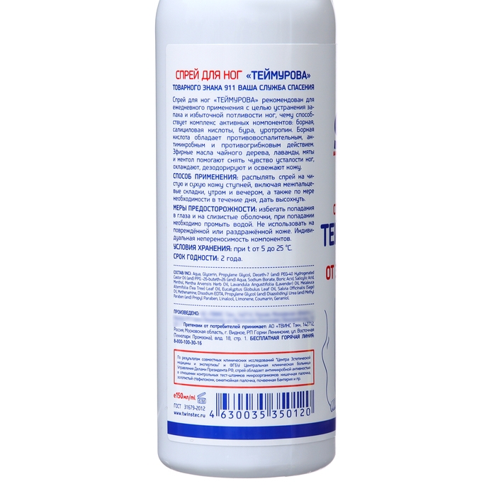 Спрей для ног Теймурова от пота и запаха, 150 мл.