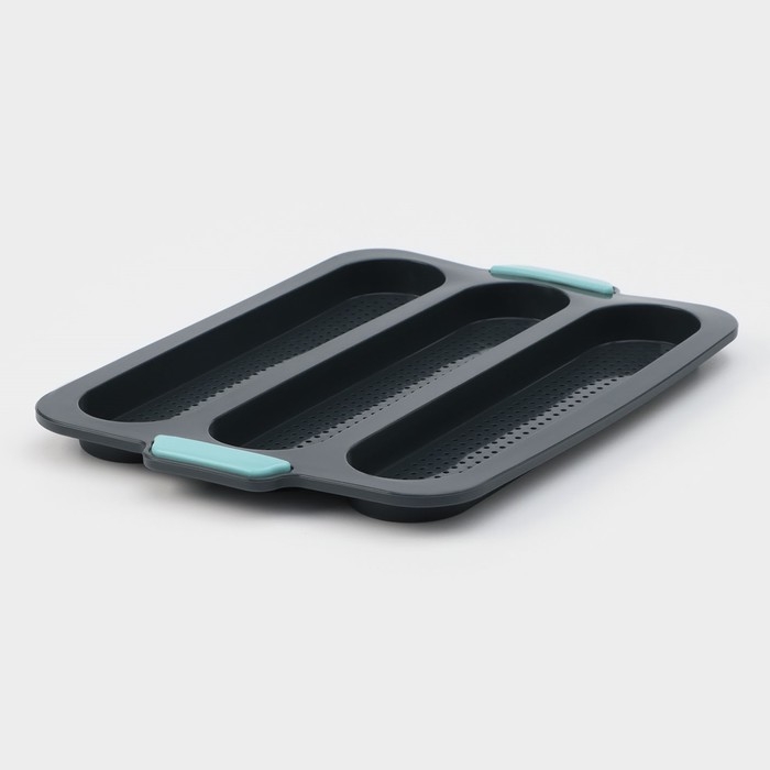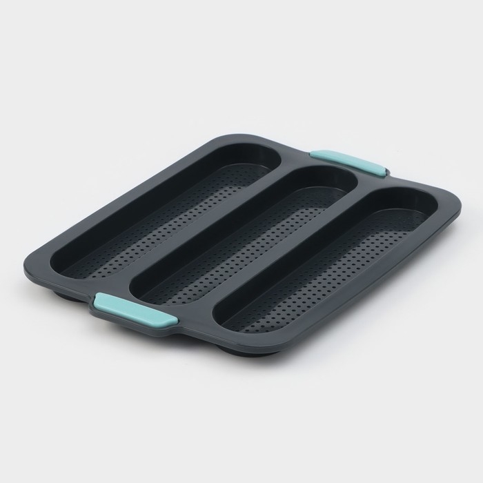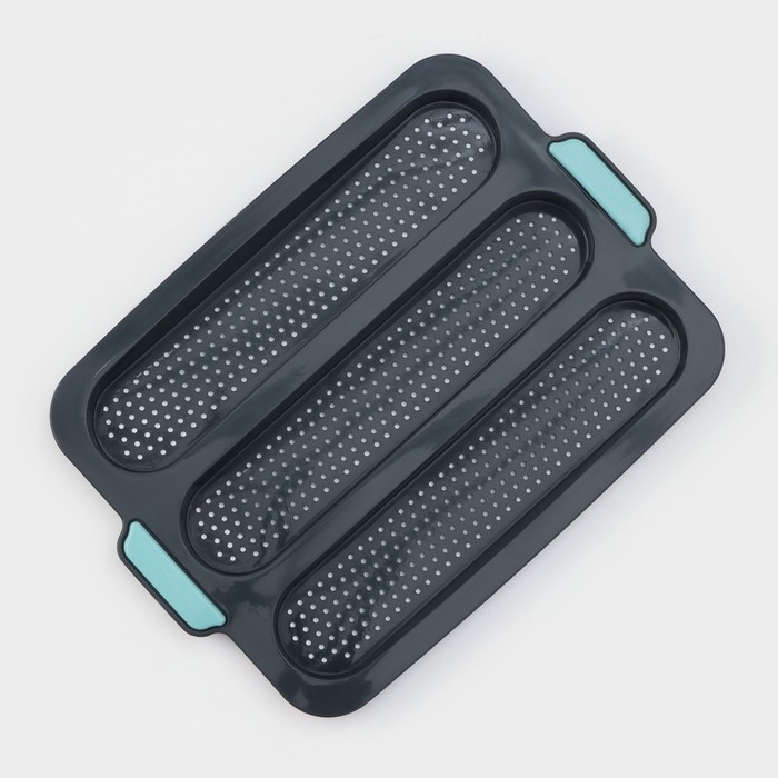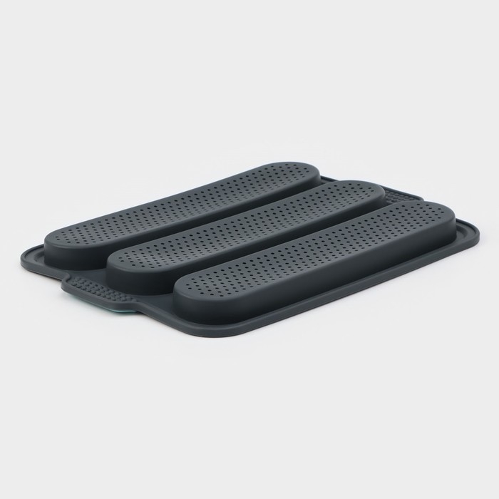 Форма для выпечки с перфорацией «Багет», силикон, 34,5×24×2,2 см, 3 ячейки (28×6×2 см), цвет серый