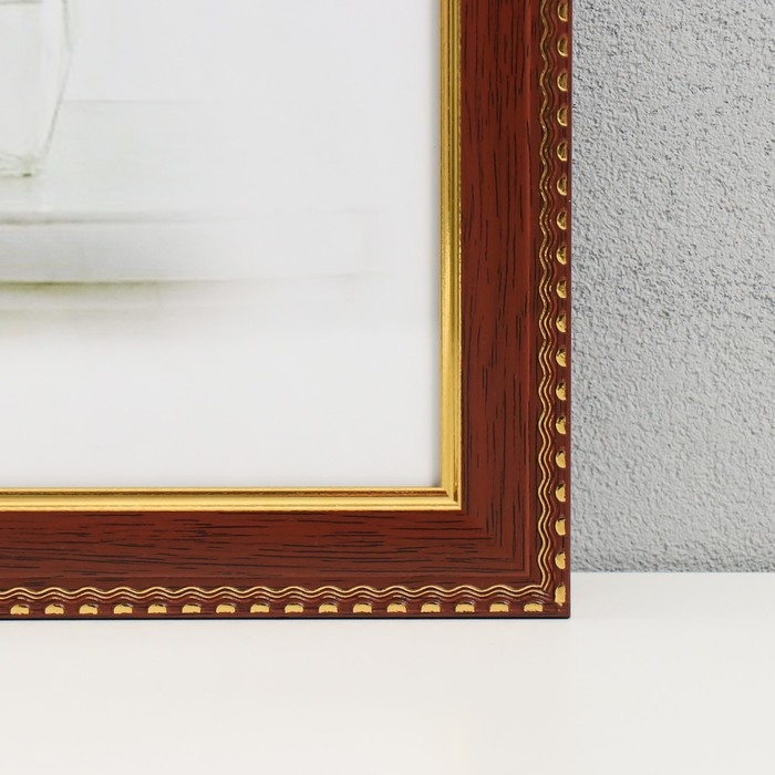Фоторамка пластик 30х40 см "Золотые волны и точки" темное дерево 33,6х43,6 см