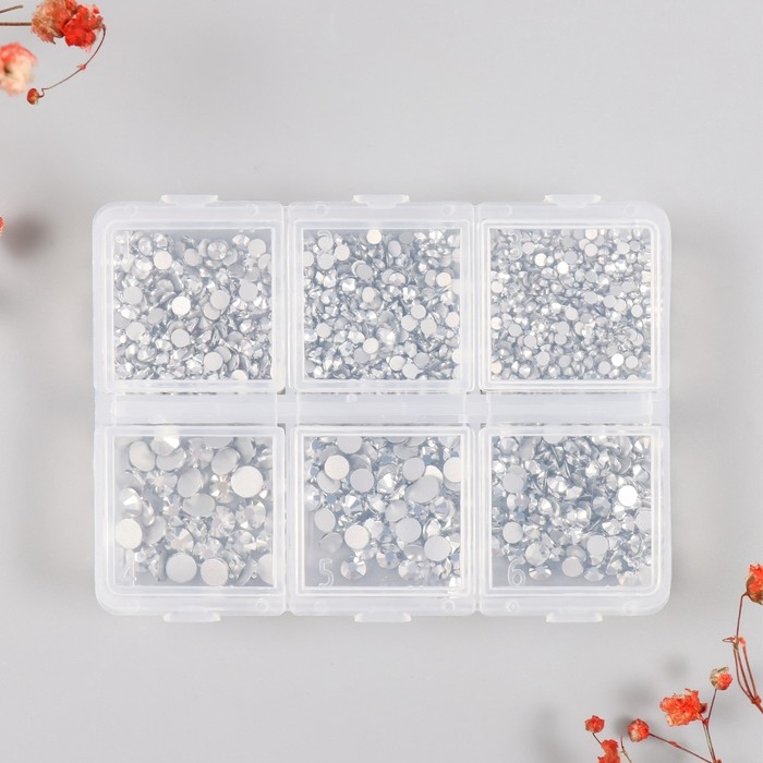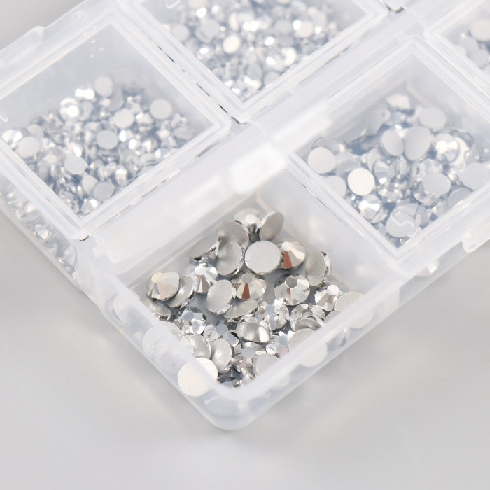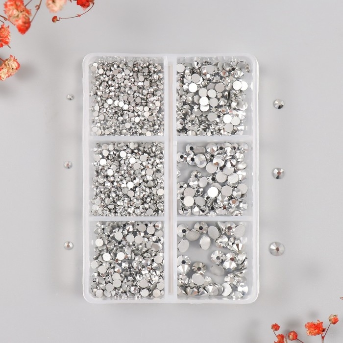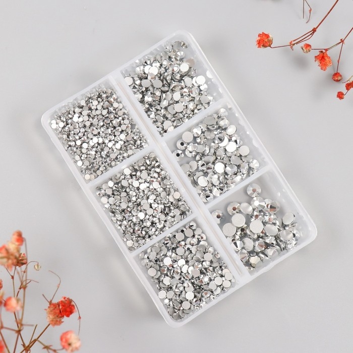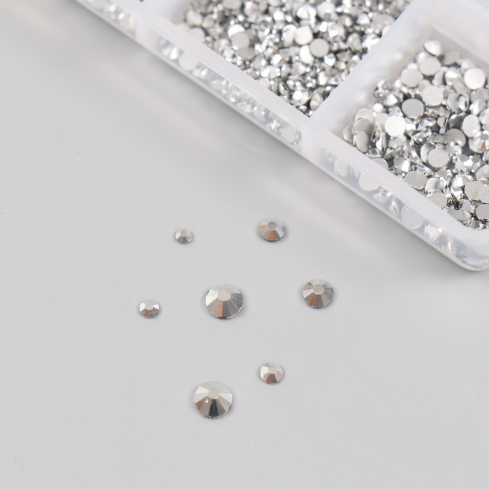 Декор для творчества стекло "Стразы. Серебро" d=2-4,8 мм н-р 1188 шт 6х8х1,5 см
