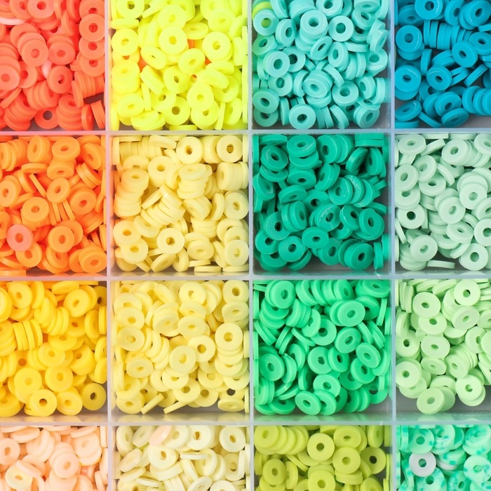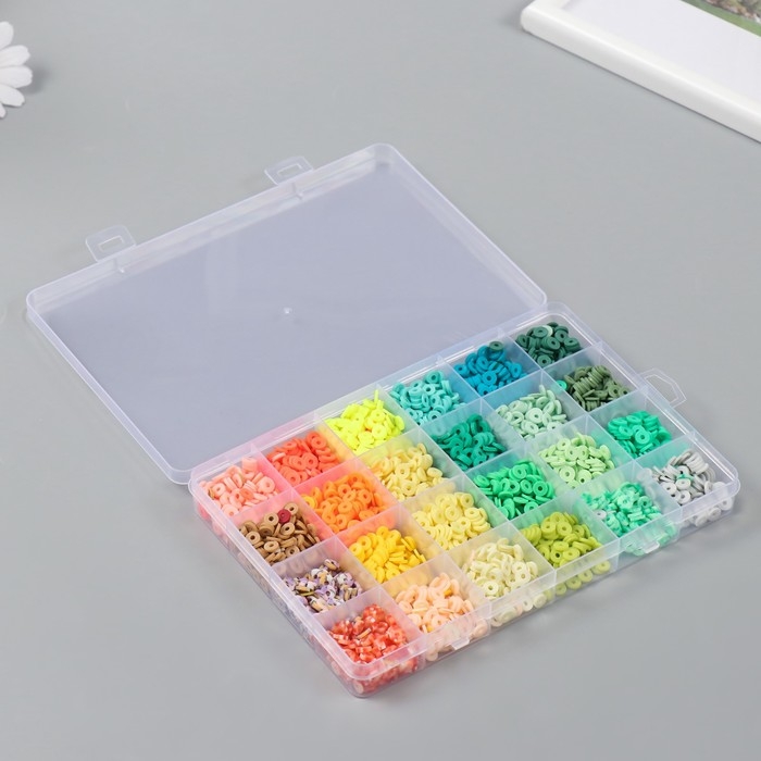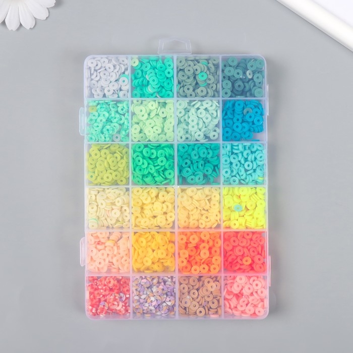 Декор для творчества пластик "Палитра зелёного и жёлтого" d=0,6 см н-р 24 цвета 18,5х13х2 см