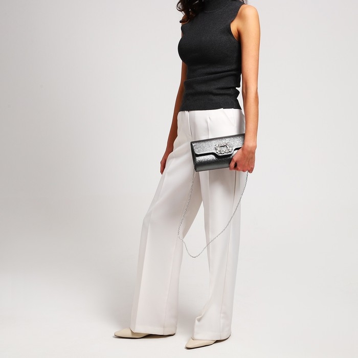 Сумка-клатч на магните, цвет тёмный серебряный