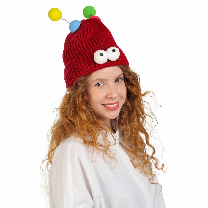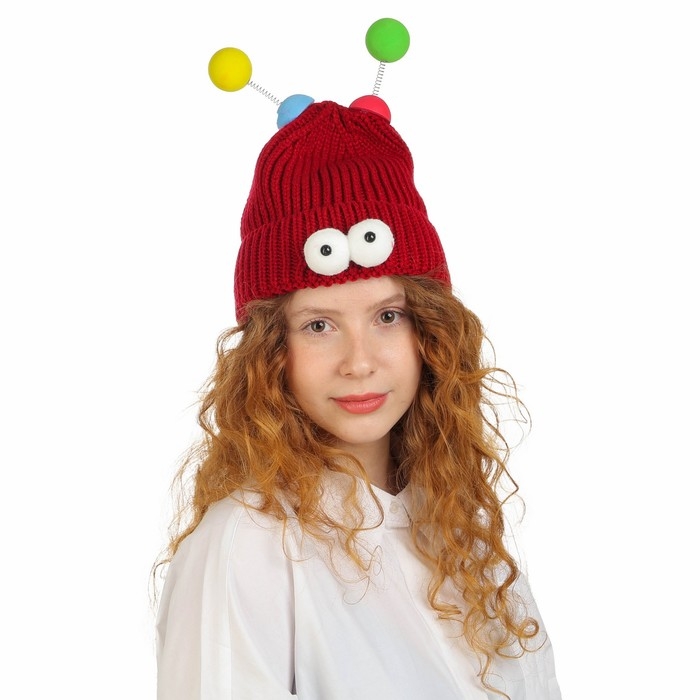 Карнавальная шапка "Глазастик" с рожками р-р 56-58, цвет бордовый