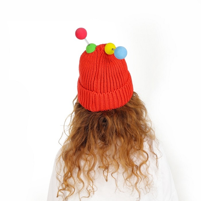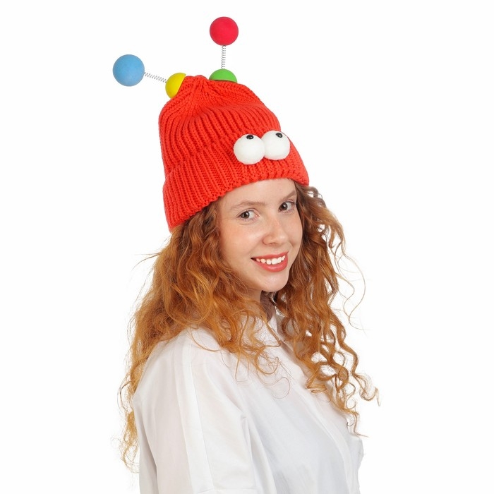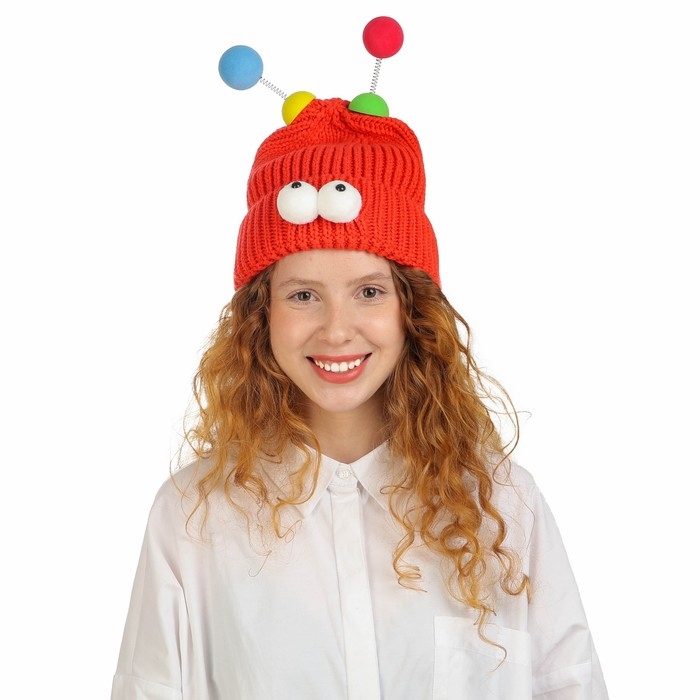 Карнавальная шапка "Глазастик" с рожками р-р 56-58, цвет красный