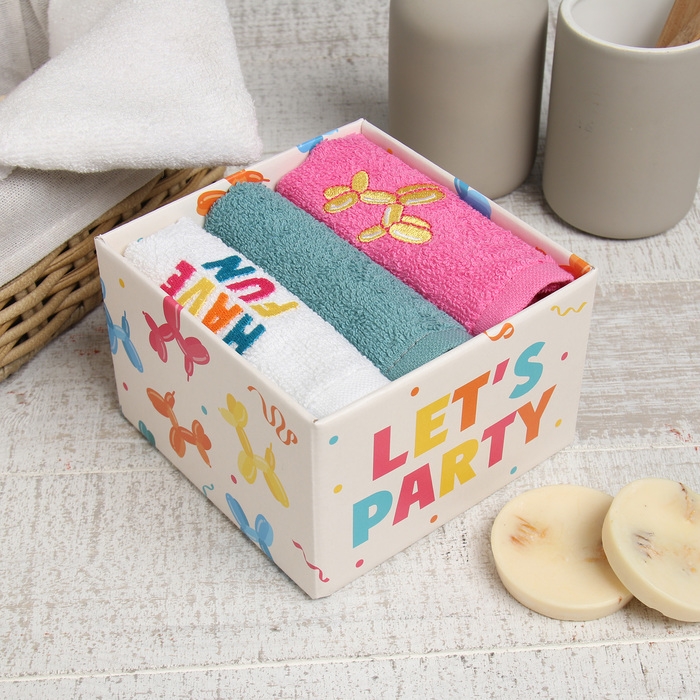 Набор махровых полотенец "Воздушный шарик" 30х30 см - 3 шт, 100% хлопок 340 г/м2