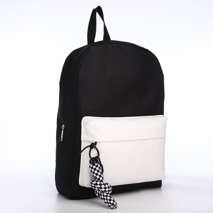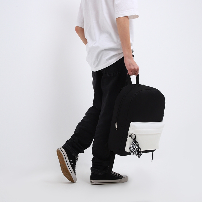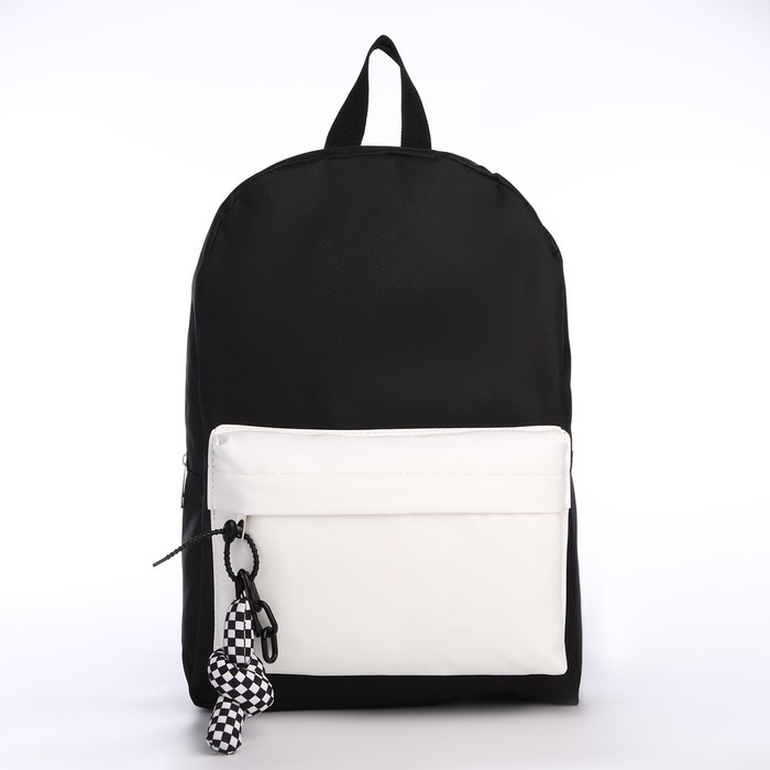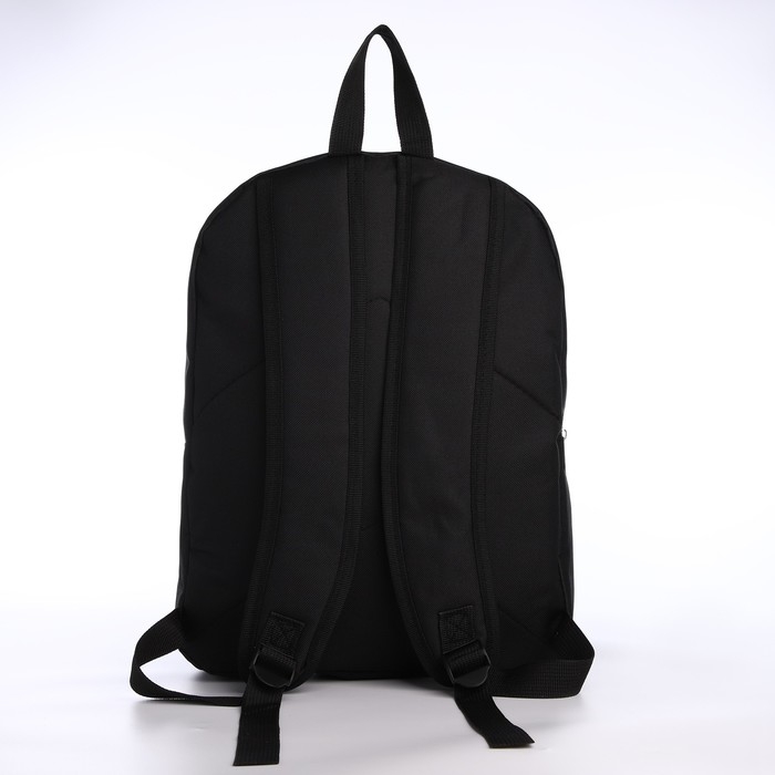 Рюкзак школьный текстильный с карманом кожзам, 38х29х11 см, цвет чёрный