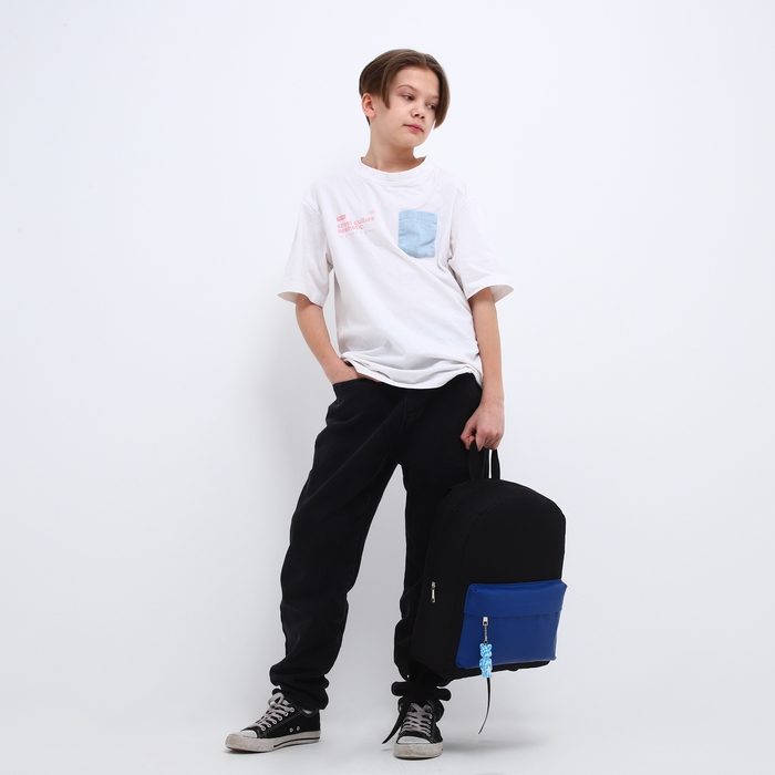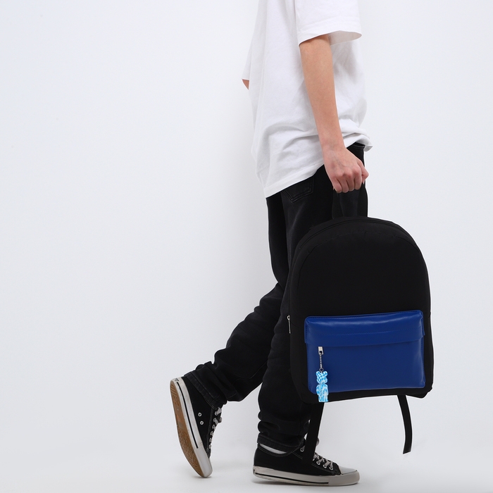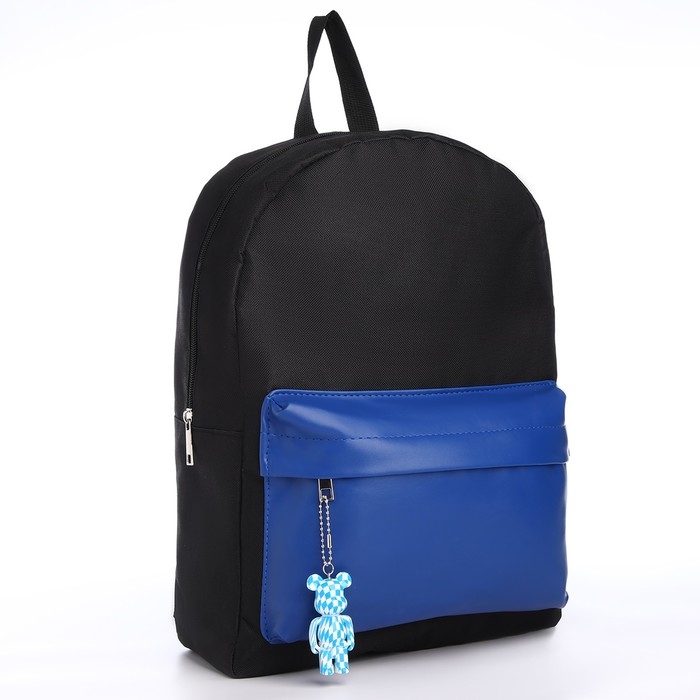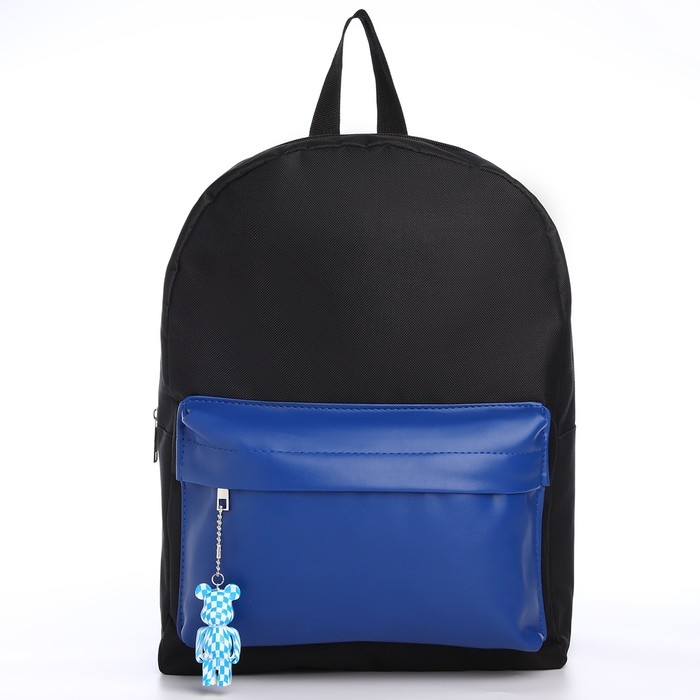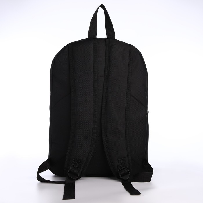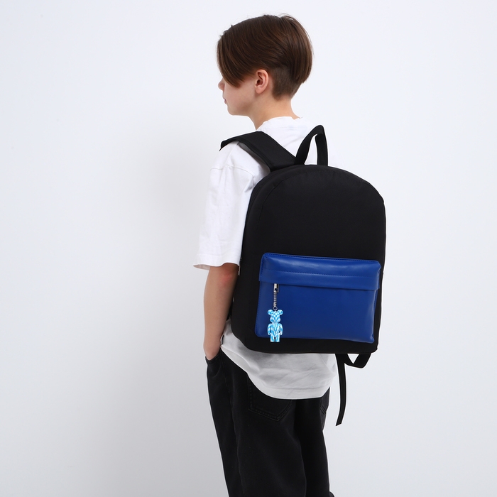 Рюкзак школьный текстильный с карманом кожзам, 38х29х11 см, цвет чёрный