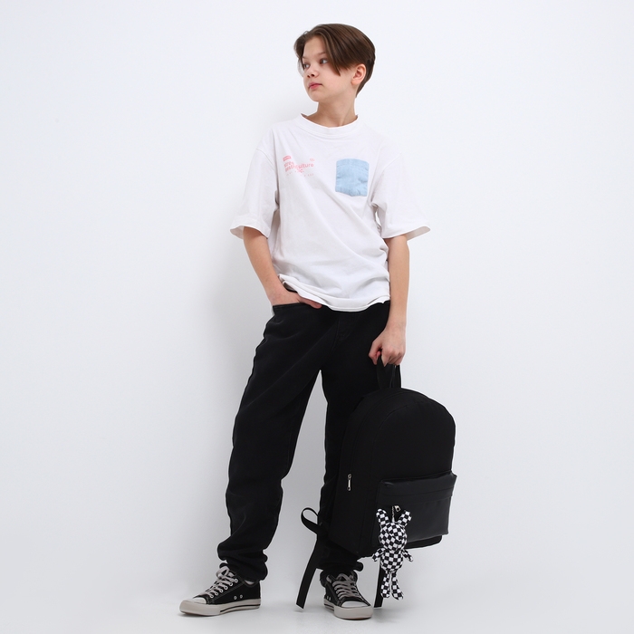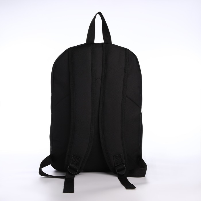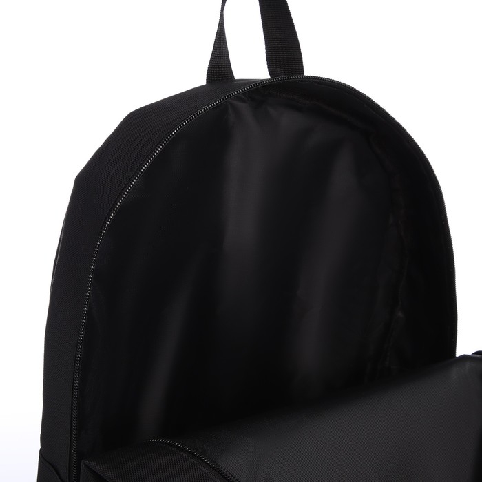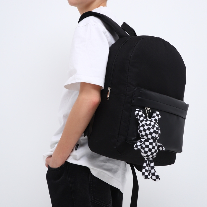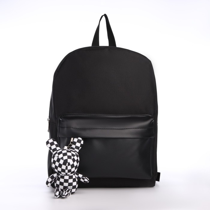 Рюкзак школьный текстильный с карманом кожзам, 38х29х11 см, цвет чёрный