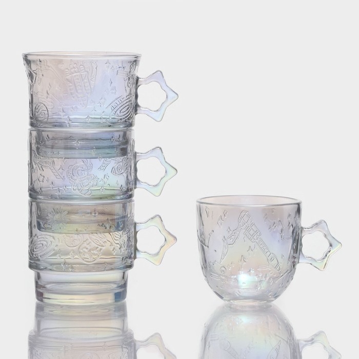 Набор кружек стеклянных «Космос», 4 предмета: 300/300/250/300 мл, цвет перламутровый