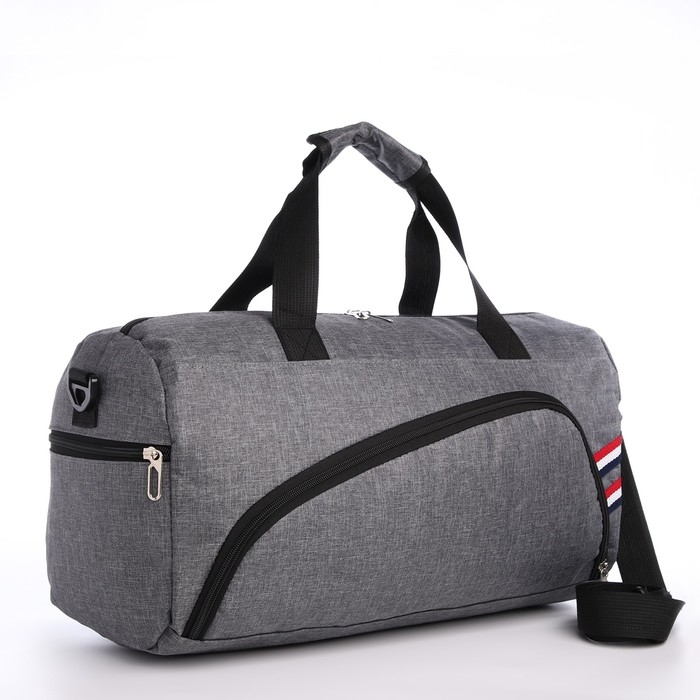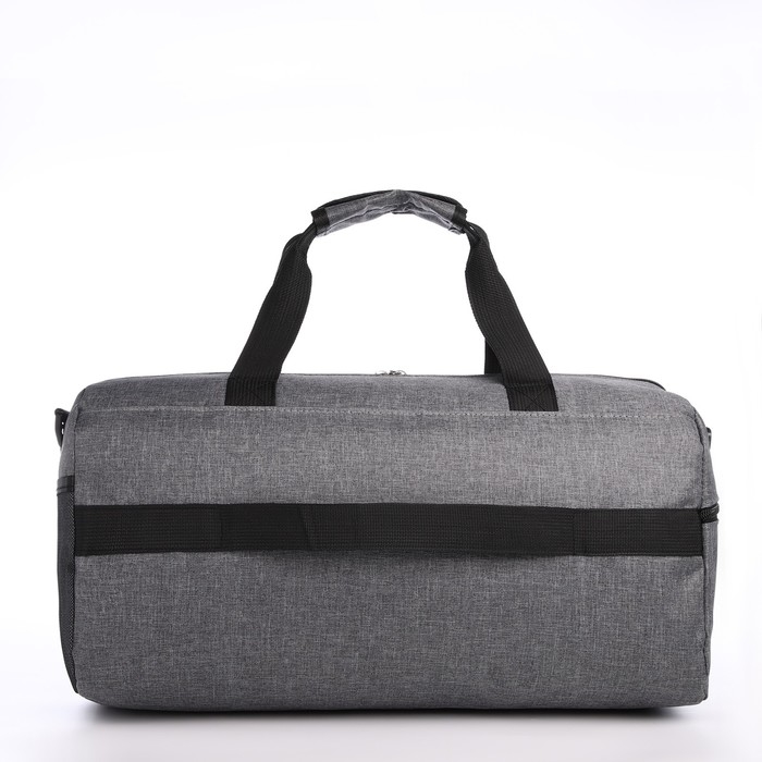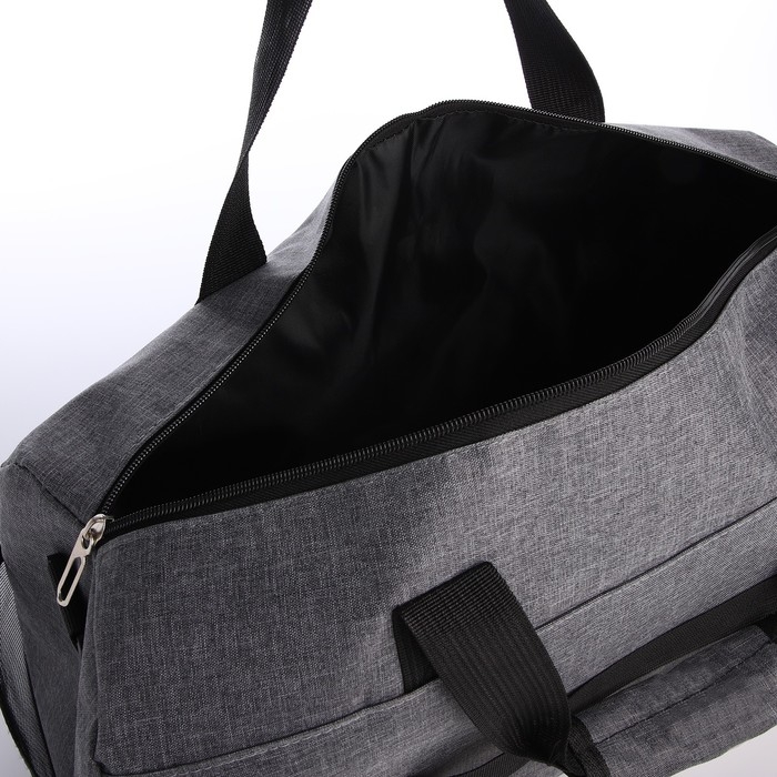Сумка дорожная на молнии, 3 наружных кармана, держатель для чемодана, длинный ремень, цвет серый