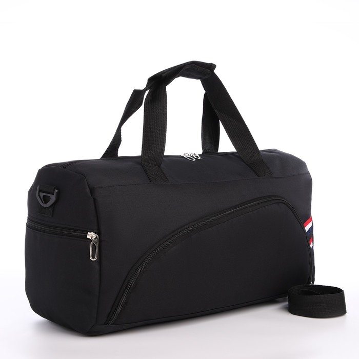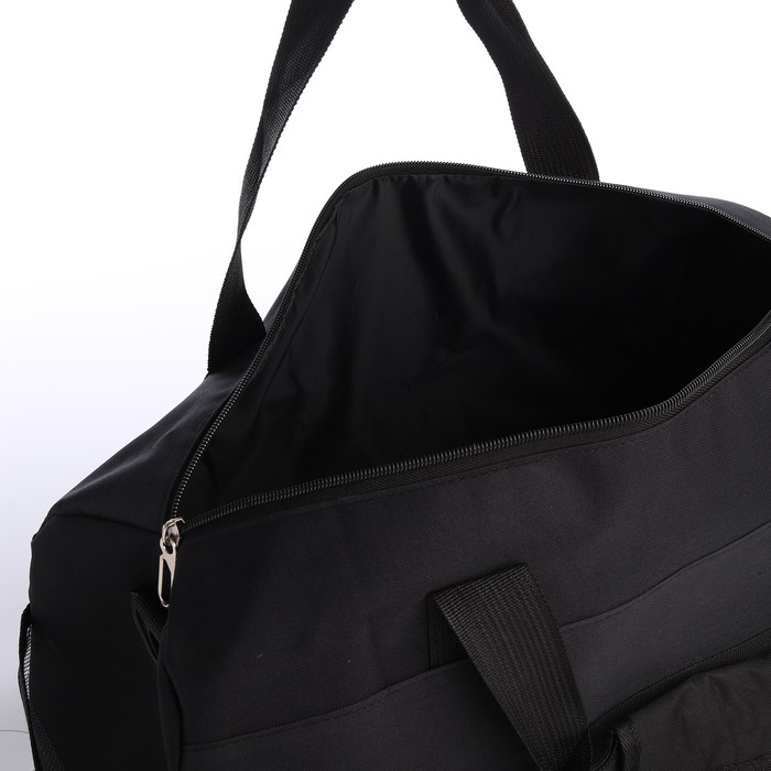 Сумка дорожная на молнии, 3 наружных кармана, держатель для чемодана, длинный ремень, цвет чёрный