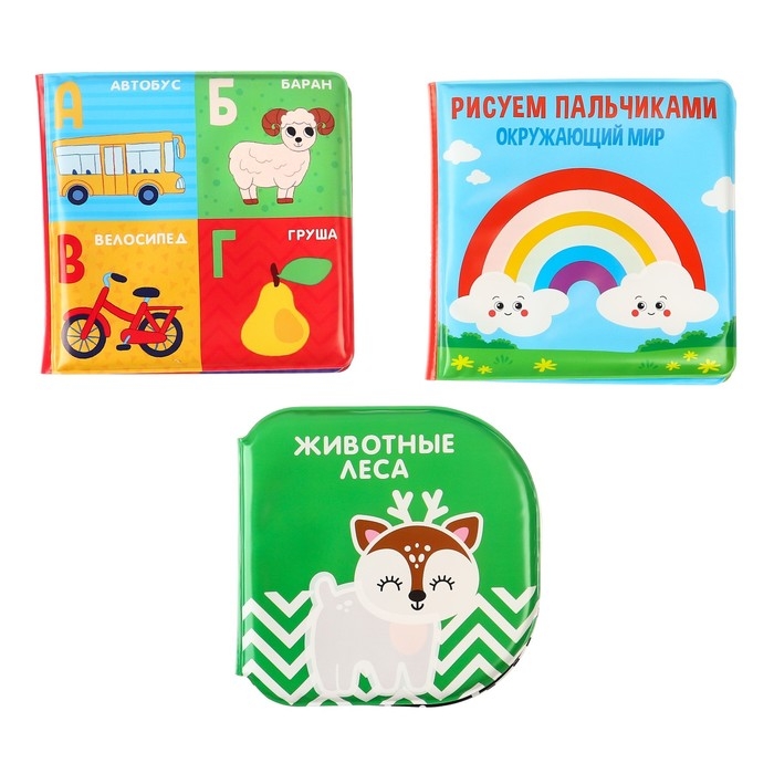 Набор книжек - игрушек для ванны «Мир вокруг нас», водная раскраска, 3 шт., Крошка Я