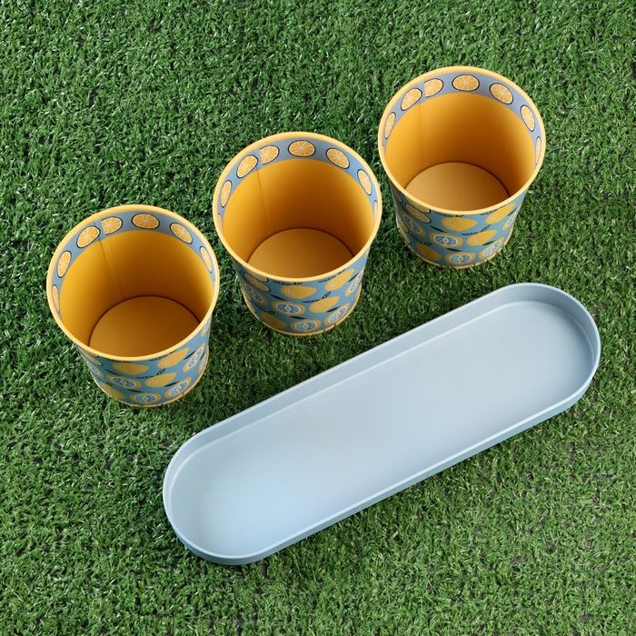 Набор кашпо на подставке "Ведерко" лимоны, 29х10х10см