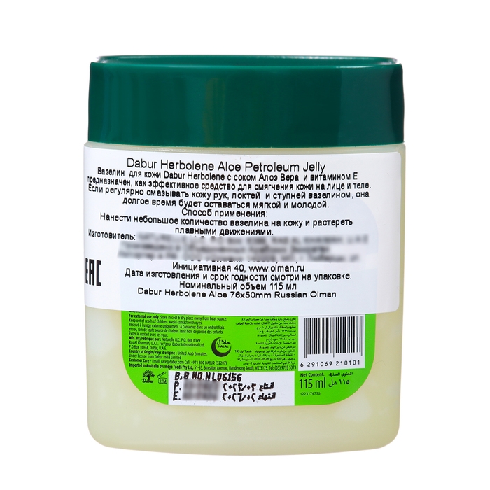 Вазелин косметический Dabur Herbolene с соком алоэ вера и витамином Е предназначен для использования как эффективное средство смягчения кожи лица и тела. При регулярном использовании кожа рук, ступней и тела будет долгое время оставаться мягкой и молодой.
