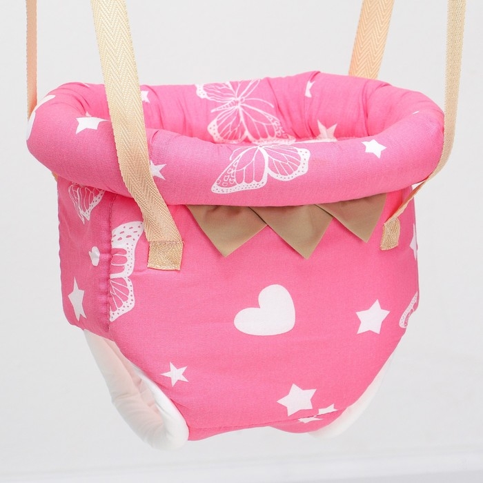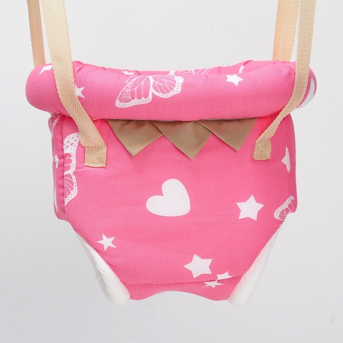 Посадите полугодовалого кроху в сиденье-штанишки. Малышу понравится активная игра, он будет подпрыгивать и качаться. Размер посадочного места можно настроить индивидуально, а за перекладину ребёнку будет удобно держаться.