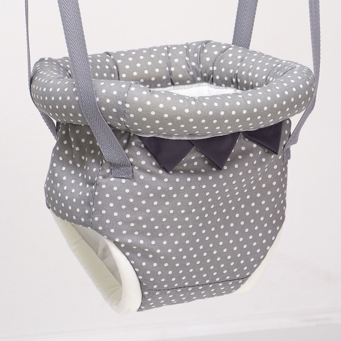 Посадите полугодовалого кроху в сиденье-штанишки. Малышу понравится активная игра, он будет подпрыгивать и качаться. Размер посадочного места можно настроить индивидуально, а за перекладину ребёнку будет удобно держаться.