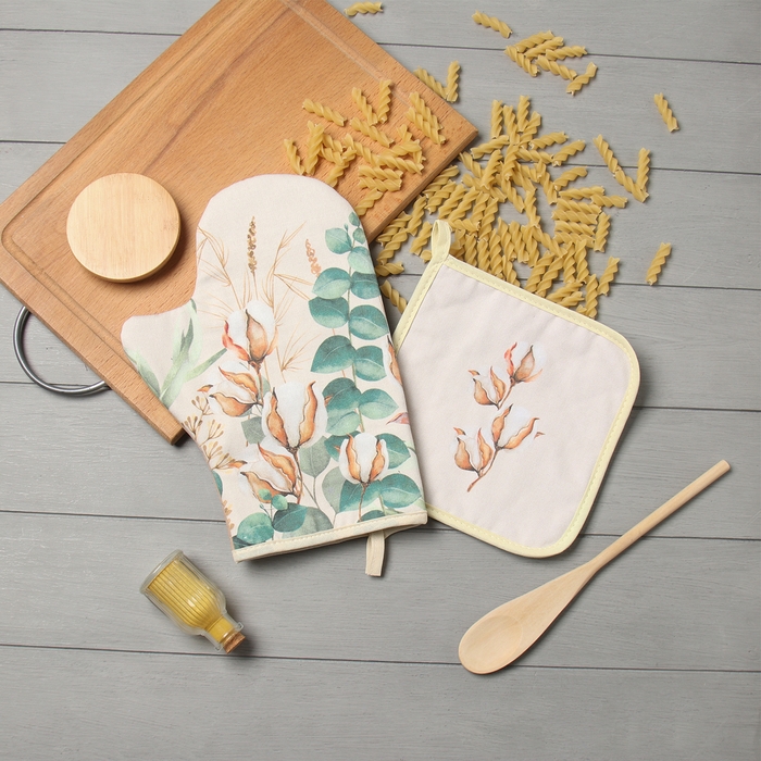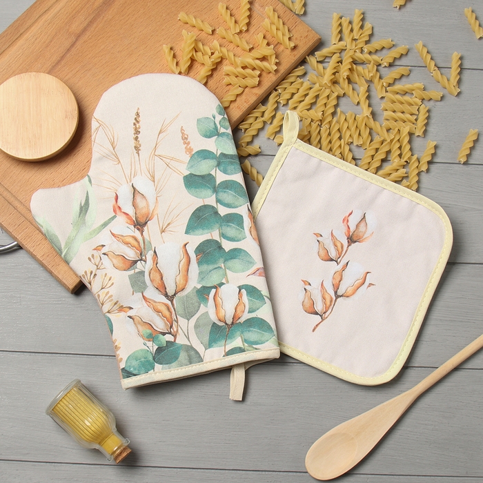 Набор кух. Этель "Хлопок" варежка-прихватка 20х28см, прихватка 19х19см,100% хл