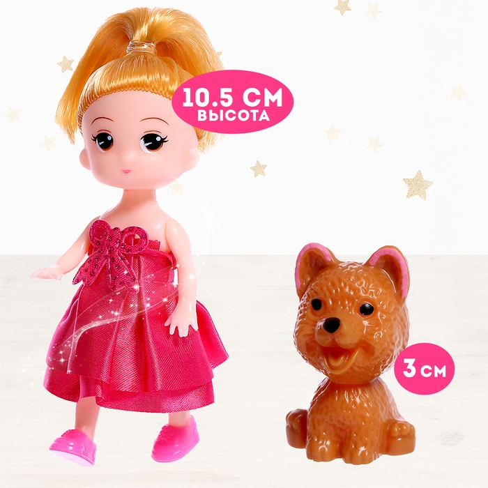 - В комплект входят кукла 9,5 см и её верный маленький питомец размером 3 см