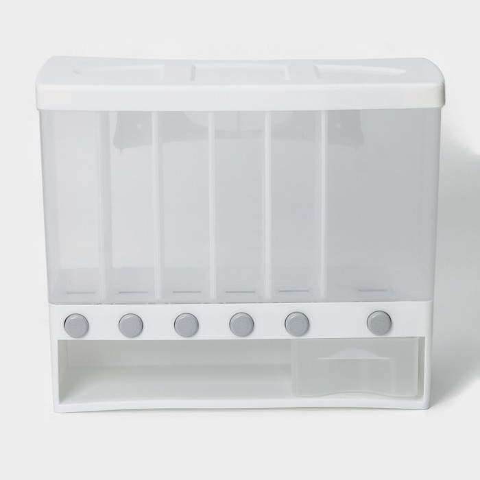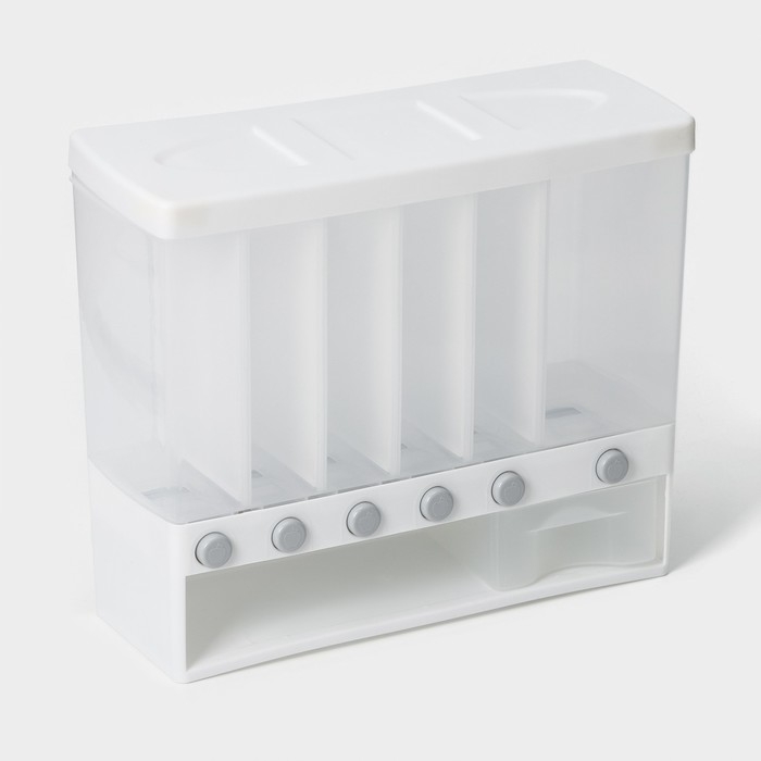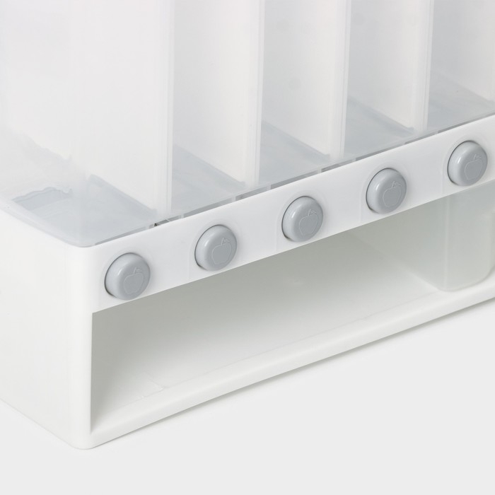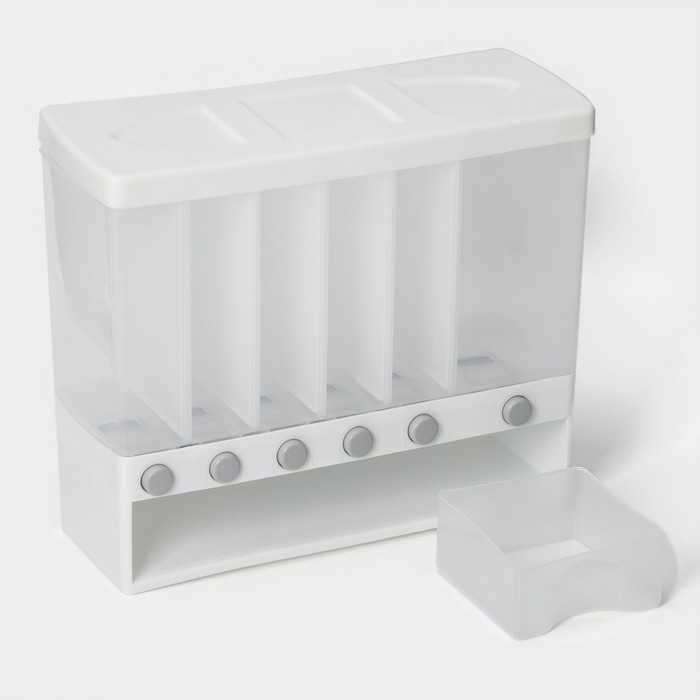 Контейнер с дозатор для сыпучих продуктов, 6 ячеек, 39×14,5×32 см, цвет белый