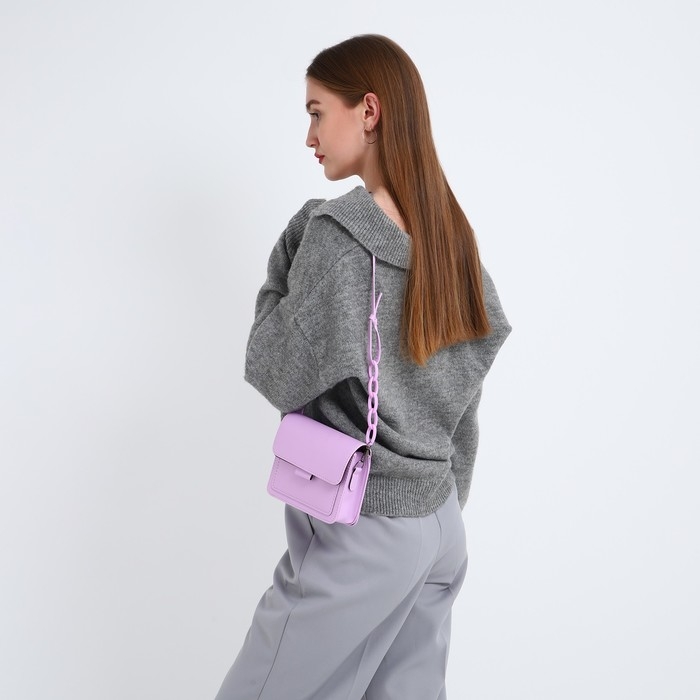 Сумка женская-мессенджер, цвет cиреневый 17х14х6 см