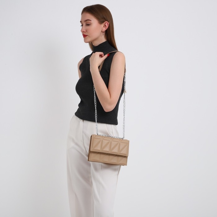 Сумка женская на клапане, 22х15х6 см, цвет бежевый