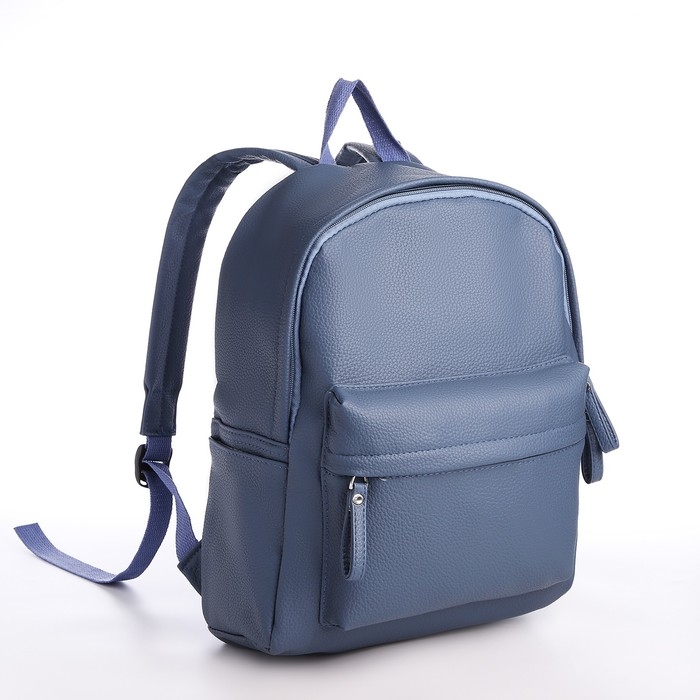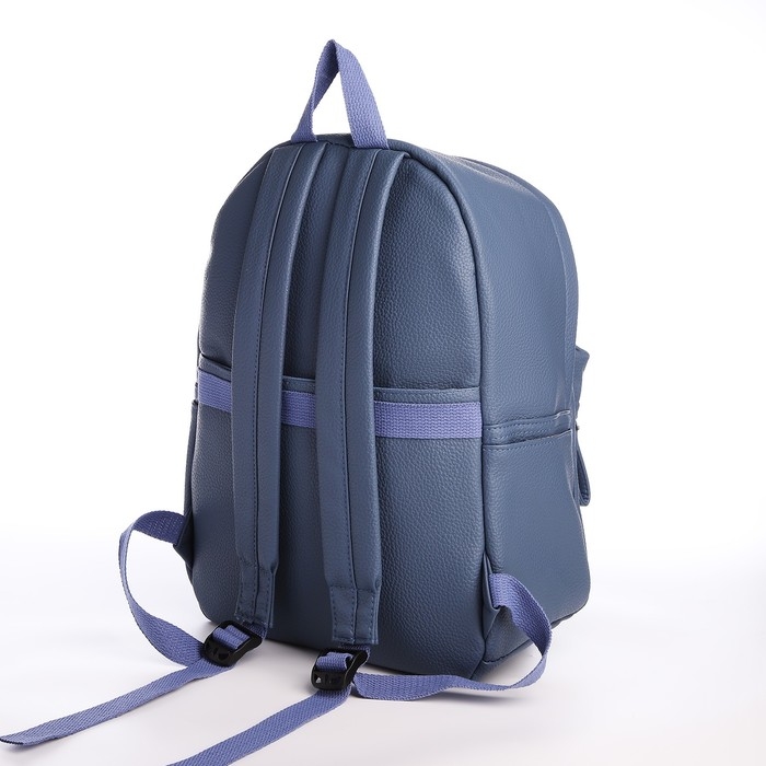 Рюкзак молодёжный из искусственной кожи на молнии, 4 кармана, цвет голубой