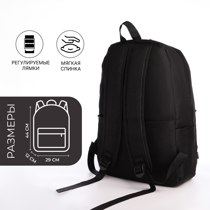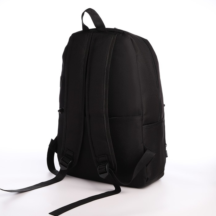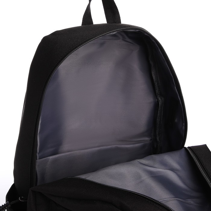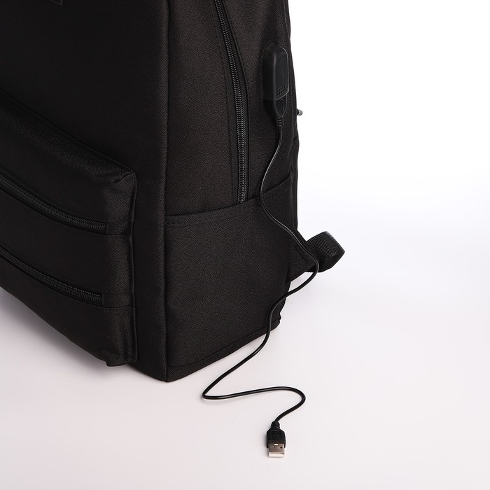 Рюкзак школьный из текстиля на молнии, USB, 5 карманов, цвет чёрный